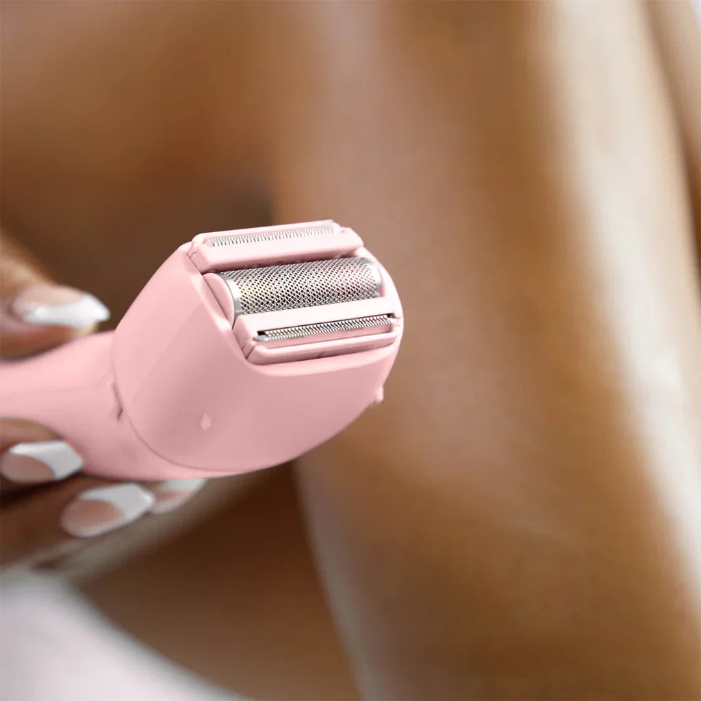 Ya sea en húmedo o seco, que prefieras usar crema o simplemente mojar la piel, la afeitadora es fácil de manejar y proporciona un afeitado suave.